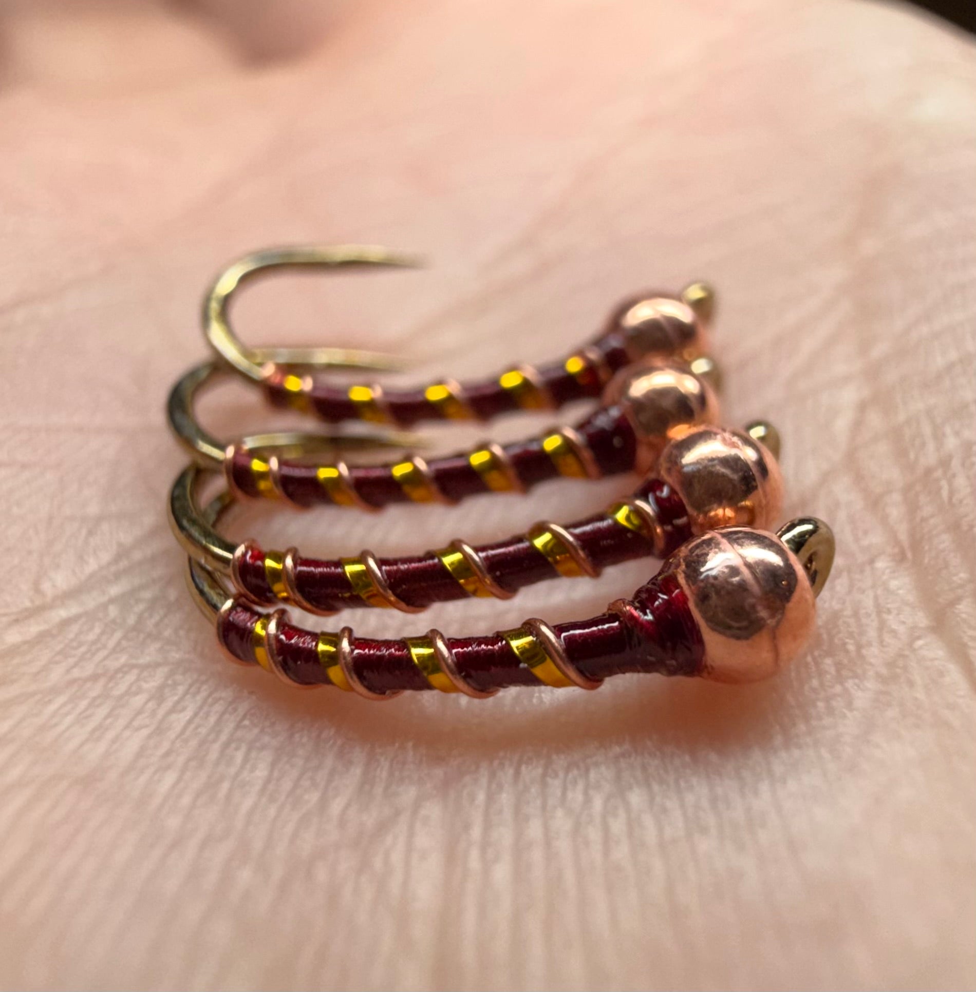 Wide angle camera makes bead appear larger and body shorter. The proportions are great on these. 3.3mm bead, Sz.14
