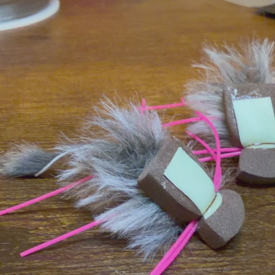 -Orientation on impact with water. While long and fancy articulated mouse flies with ears and fancy legs and tails are nice looking and catch the eye of anglers, they do almost nothing for anglers in terms of fish-ability. using one tab of thick foam on top of the fly, and a single counterweight of the streamer stripper hook, this fly lands correctly every single time. Watch the video on the description. Often, simple is best, and these simple mice land right-side-up every single time. You'll never have a bogus cast where your fly is upsidedown, invisible to you.