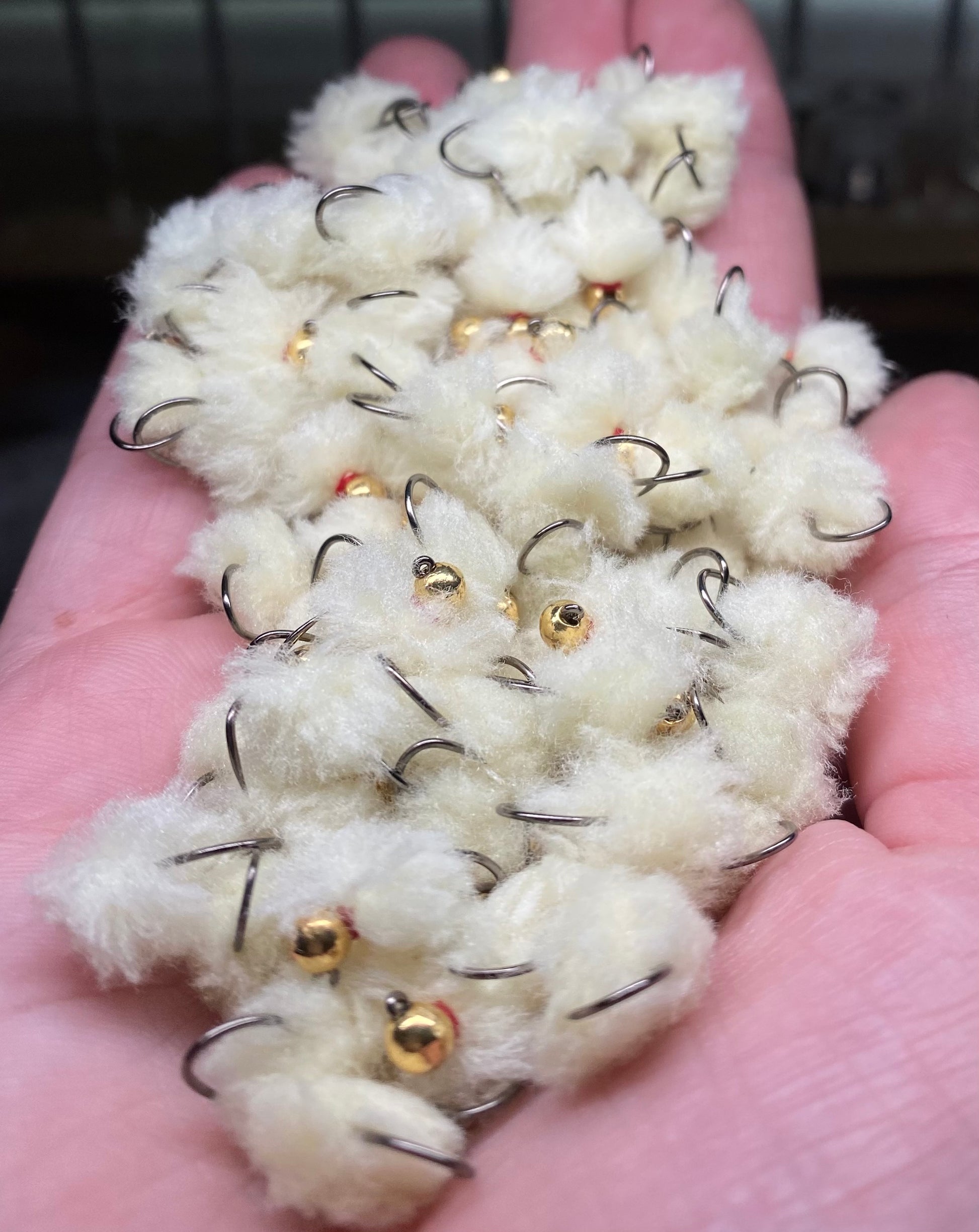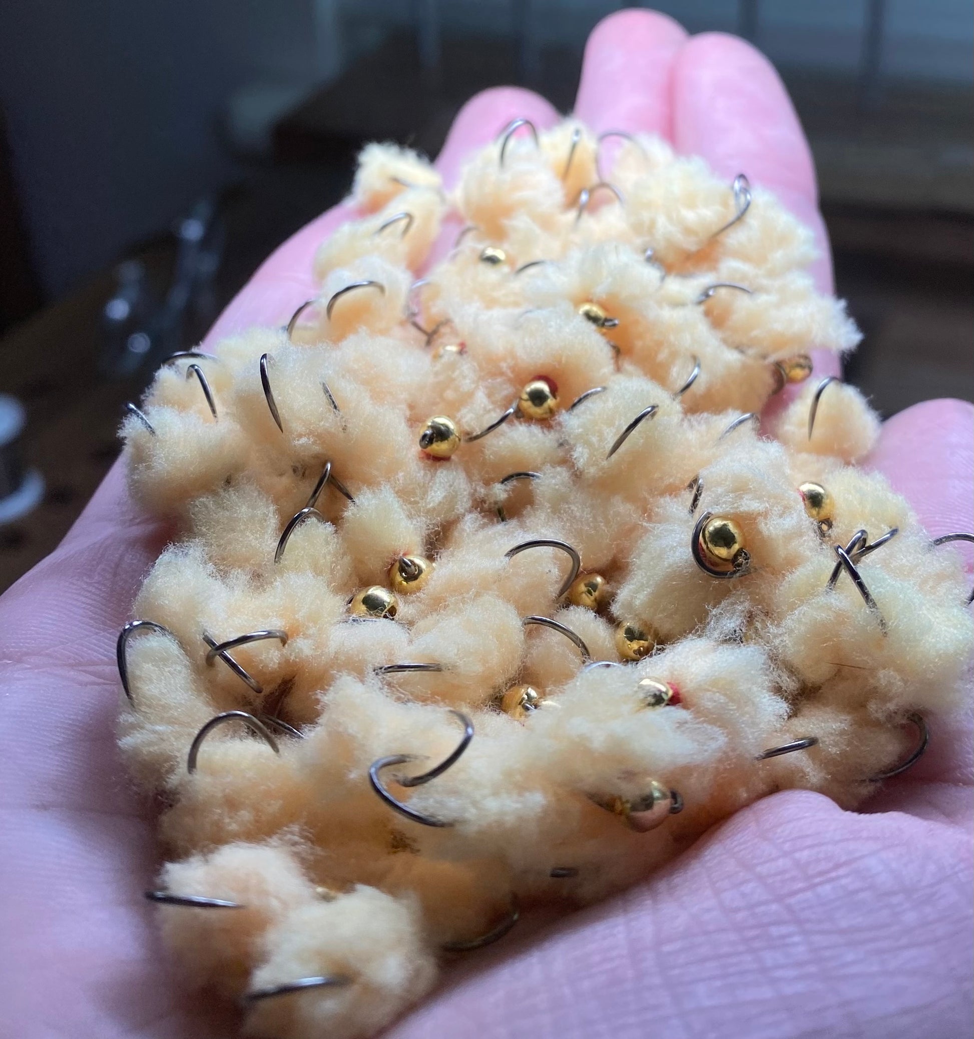 The tungsten egg is a staple pattern that always finds a couple fish, especially fall-spring. Each pack contains one dozen (12) flies, 4 of each color. Orange, light apricot, and dead egg yellow/cream. Bead is 3.8mm gold tungsten.